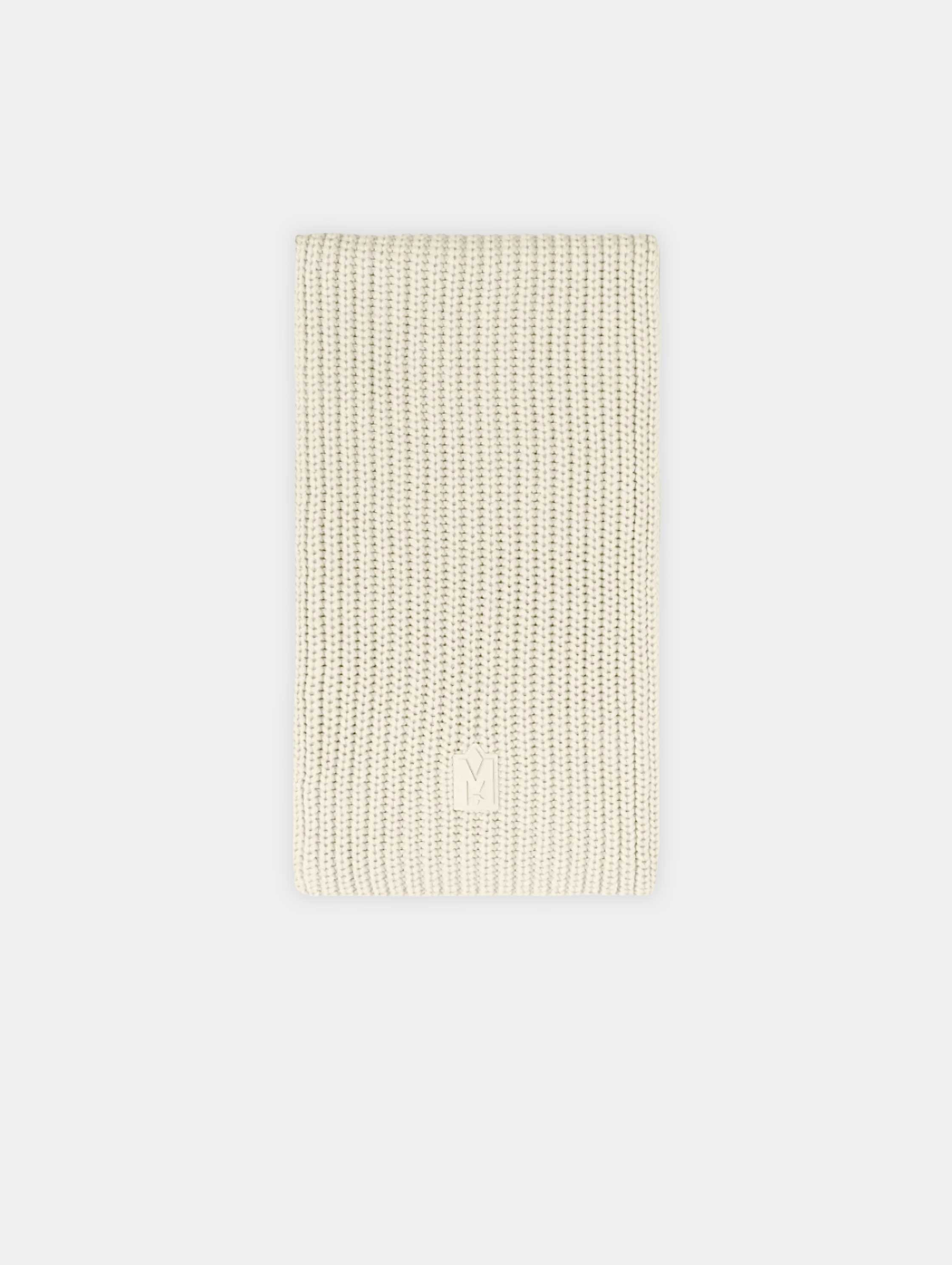 Tricotée dans un mélange de laine mérinos, cette écharpe allie confort et chaleur. Elle est rehaussée d’un patch logo signature en silicone, pour une touche moderne et distinctive.