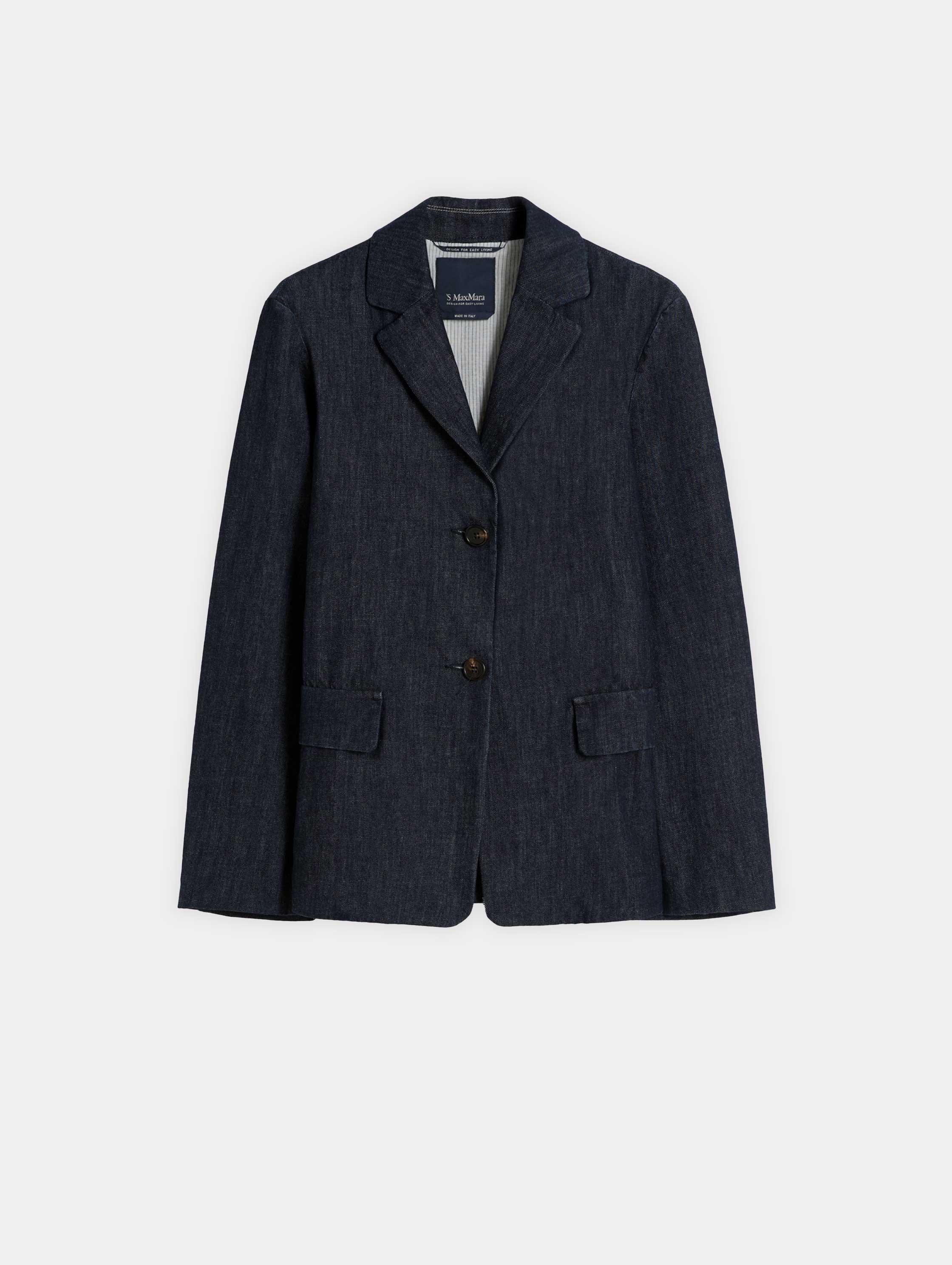 Cette veste droite en denim de coton stretch délavé allie structure et confort. Son col à revers et ses manches montées avec petites fentes aux poignets apportent une finition soignée, tandis que la fermeture à deux boutons apparents sur le devant souligne son style classique et élégant. Les poches passepoilées avec rabat et la fente centrale au dos complètent la pièce, offrant fonctionnalité et mouvement. Entièrement doublée en coton, elle assure confort et tenue parfaite au quotidien.