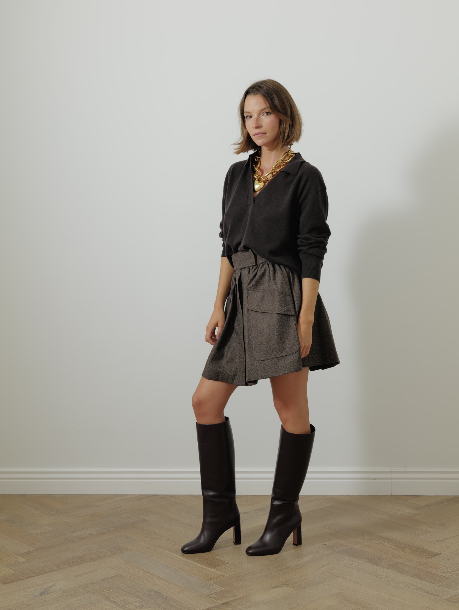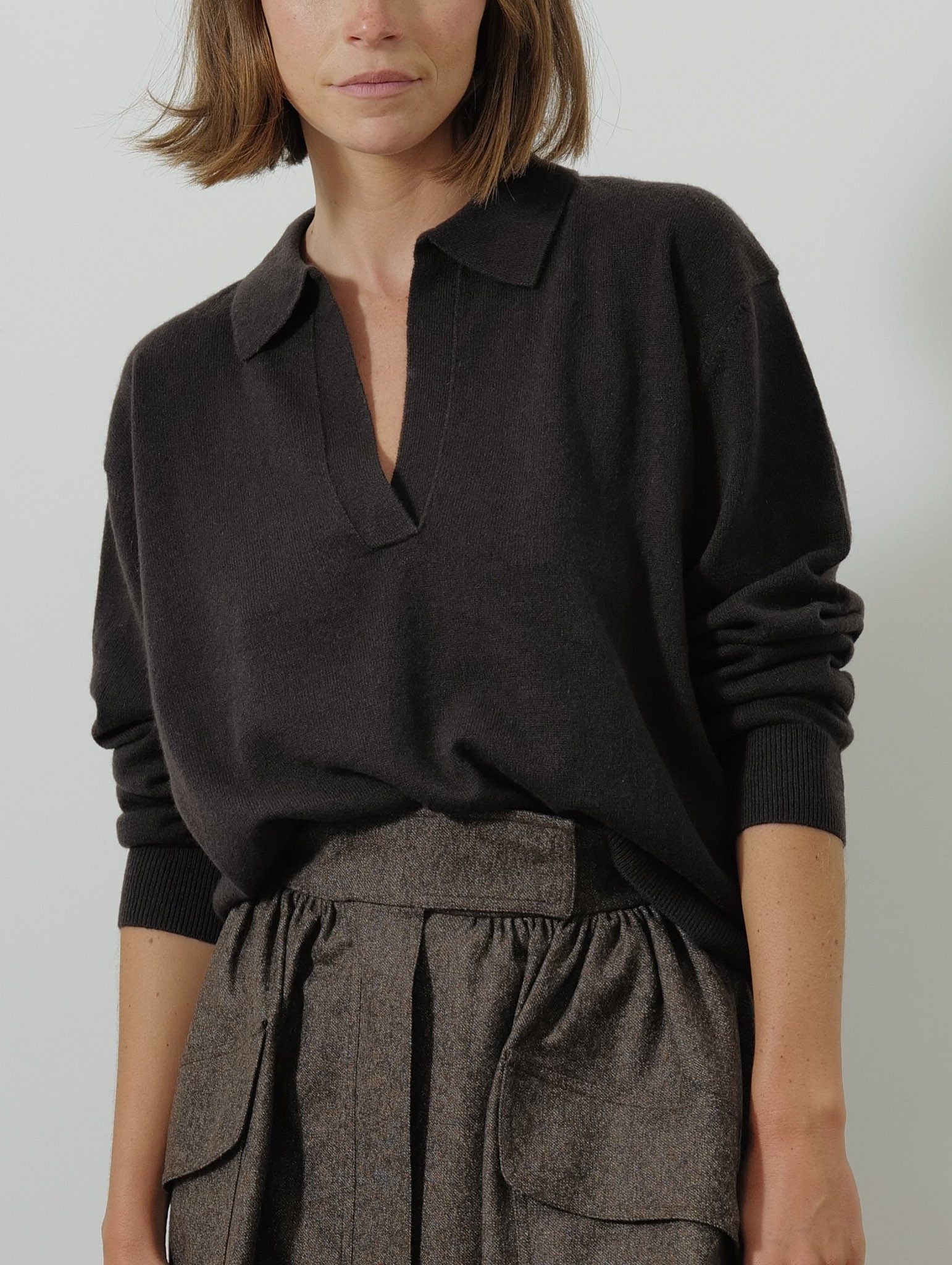 Confectionné en 100 % cachemire, ce pull séduit par son col V à revers polo et sa coupe droite au tomber naturel. Doté de manches longues à emmanchures descendues, il se porte facilement grâce à sa fermeture à enfiler. Les finitions en bords-côtes et son aspect uni en font une pièce intemporelle, à la fois élégante et décontractée.