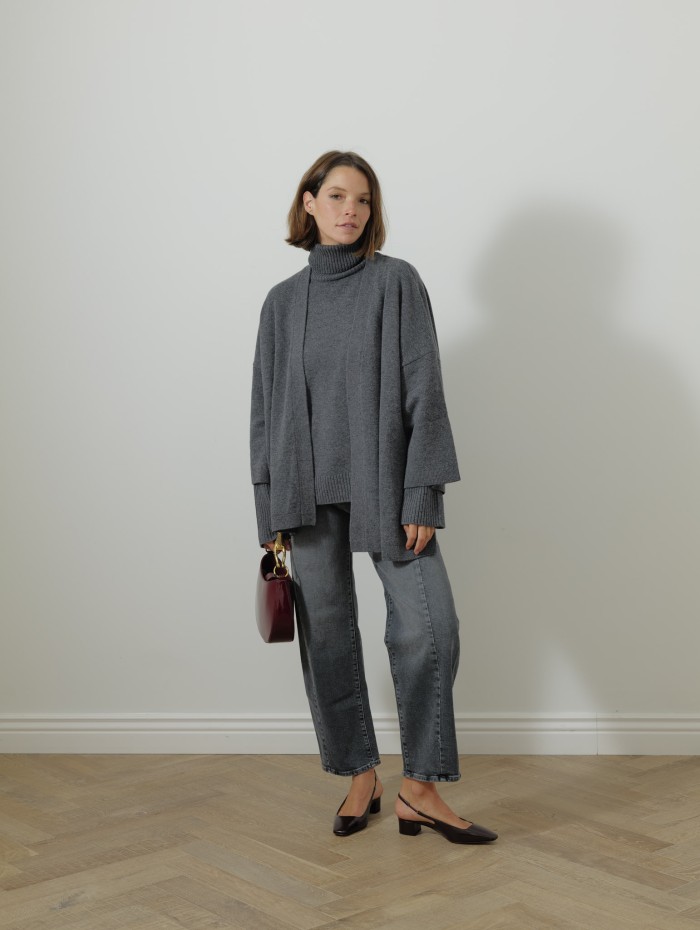 Ce gilet gris à col châle allie confort et sophistication avec sa laine mérinos douce et respirante qui régule naturellement la température. Sa coupe classique à manches longues offre une silhouette raffinée et intemporelle.