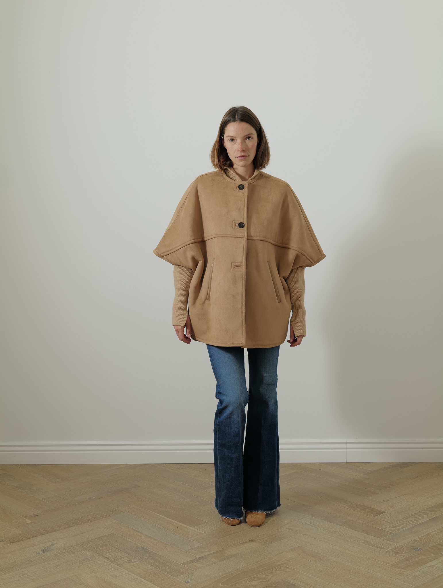 Cette cape signée Max Mara incarne le parfait équilibre entre confort et sophistication. Confectionnée en Italie dans une matière synthétique brossée ultra-douce, elle est doublée d’un molleton luxueux en poil de chameau et soie mélangés. Sa coupe élégante se distingue par des manches mi-longues, une encolure ronde contrastante et des poches passepoilées. Fermée par de jolis boutons en corne naturelle, elle offre une allure raffinée et contemporaine.