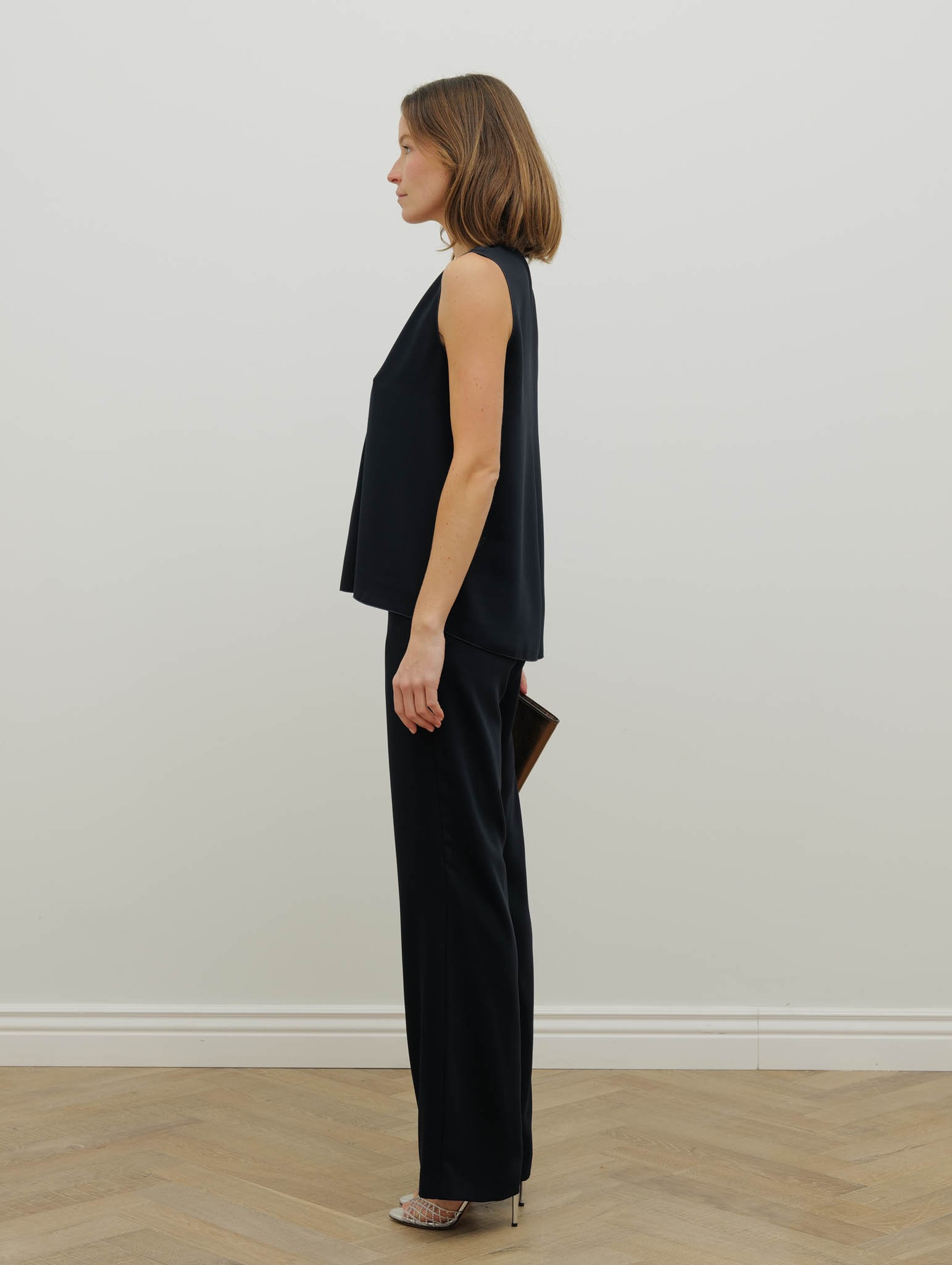 Blouse bleu marine fluide sans manches col Vaa