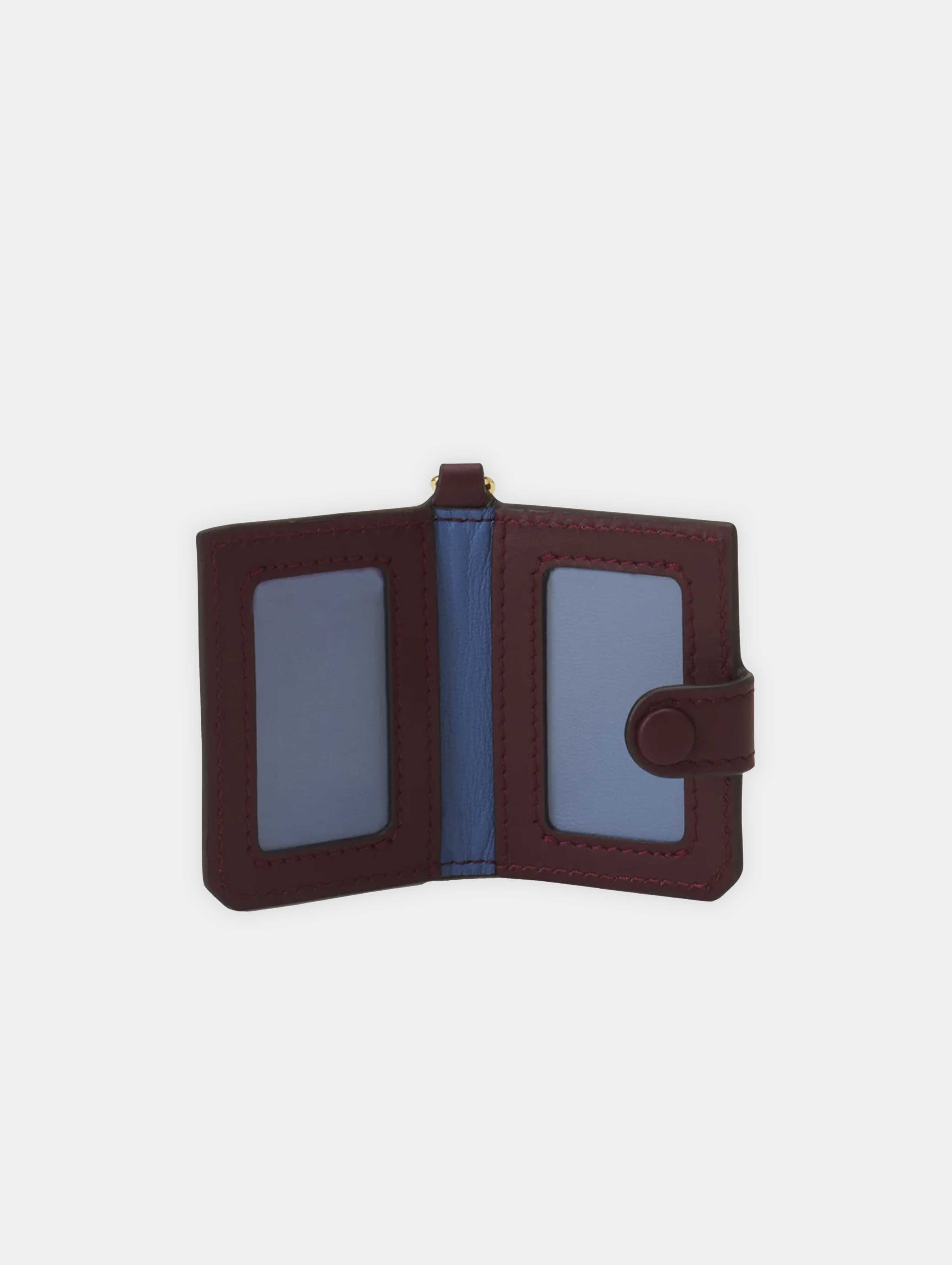 Ce porte-photo Lanvin en cuir de veau reflète l’élégance intemporelle et le savoir-faire italien. Mesurant 5 x 3 x 1,5 cm, il est orné de deux breloques délicates sur le côté et présente une doublure bleu signature Lanvin qui ajoute une touche raffinée. Le logo Lanvin embossé à l’avant souligne son identité prestigieuse. Entièrement fabriqué en Italie, cet accessoire allie luxe, fonctionnalité et sophistication au quotidien, avec un cuir de veau de qualité exceptionnelle pour la matière principale et la doublure.