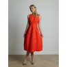 Découvrez cette robe dans une teinte flamme, un subtil équilibre entre l’orange incandescent et le rouge profond. Son design épuré met en valeur une coupe fluide qui épouse délicatement la silhouette tout en offrant un confort absolu. Fabriquée dans un tissu léger et légèrement satiné, elle capte la lumière avec élégance. Dotée de poches discrètes sur les côtés, presque invisibles, elle allie praticité et raffinement. Son encolure dégagée et sa coupe midi confèrent une allure sophistiquée, idéale pour une soirée d’été, une cérémonie ou une occasion spéciale. Associez-la à des sandales dorées ou des escarpins nude pour un look irrésistiblement chic.