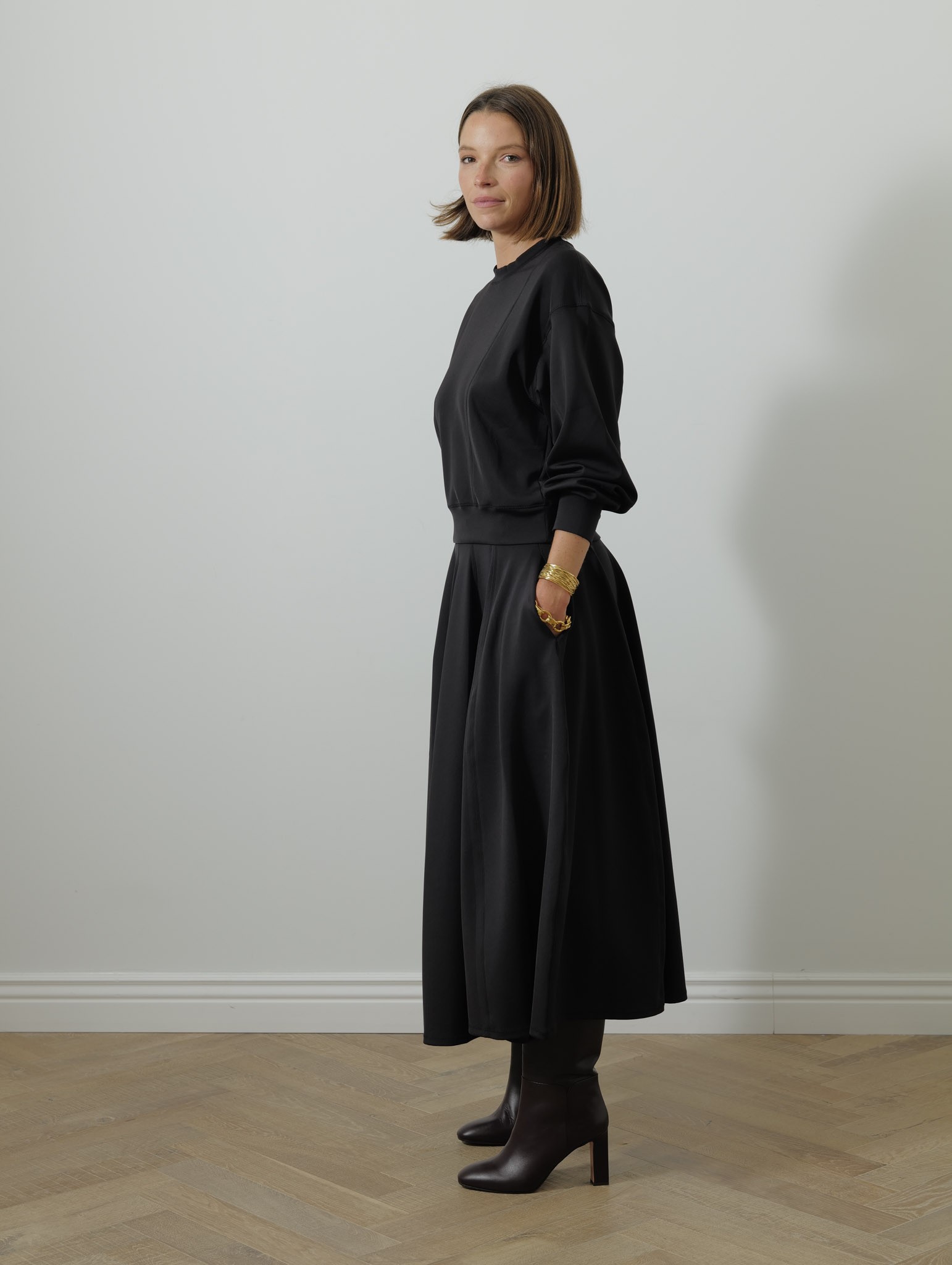 La jupe Farneto signée Max Mara se distingue par son élégance intemporelle. Confectionnée en satin fluide, elle adopte une silhouette trapèze sublimée par une taille élastiquée et une fermeture zippée dissimulée, pour une allure à la fois raffinée et moderne.