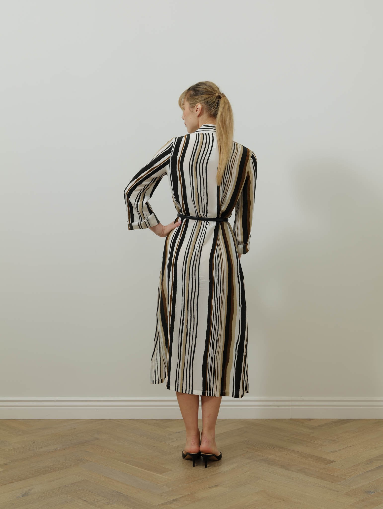 Le petit col polo en V, fermé par deux boutons, structure délicatement l’encolure, et les manches montées longues assurent un tombé harmonieux. Les fentes latérales au bas facilitent le mouvement et la ceinture assortie à la taille permet d’ajuster la silhouette selon vos envies. Non doublée, cette pièce légère incarne une allure chic et décontractée.