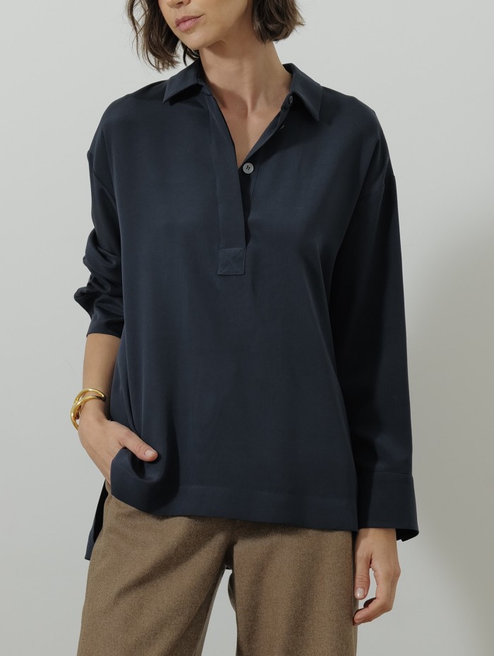 Le top Afa, tricoté en pure laine vierge, séduit par sa texture douce et sa coupe minimaliste. Son col roulé et ses manches courtes offrent une allure à la fois élégante et décontractée, parfaite pour la transition entre les saisons.