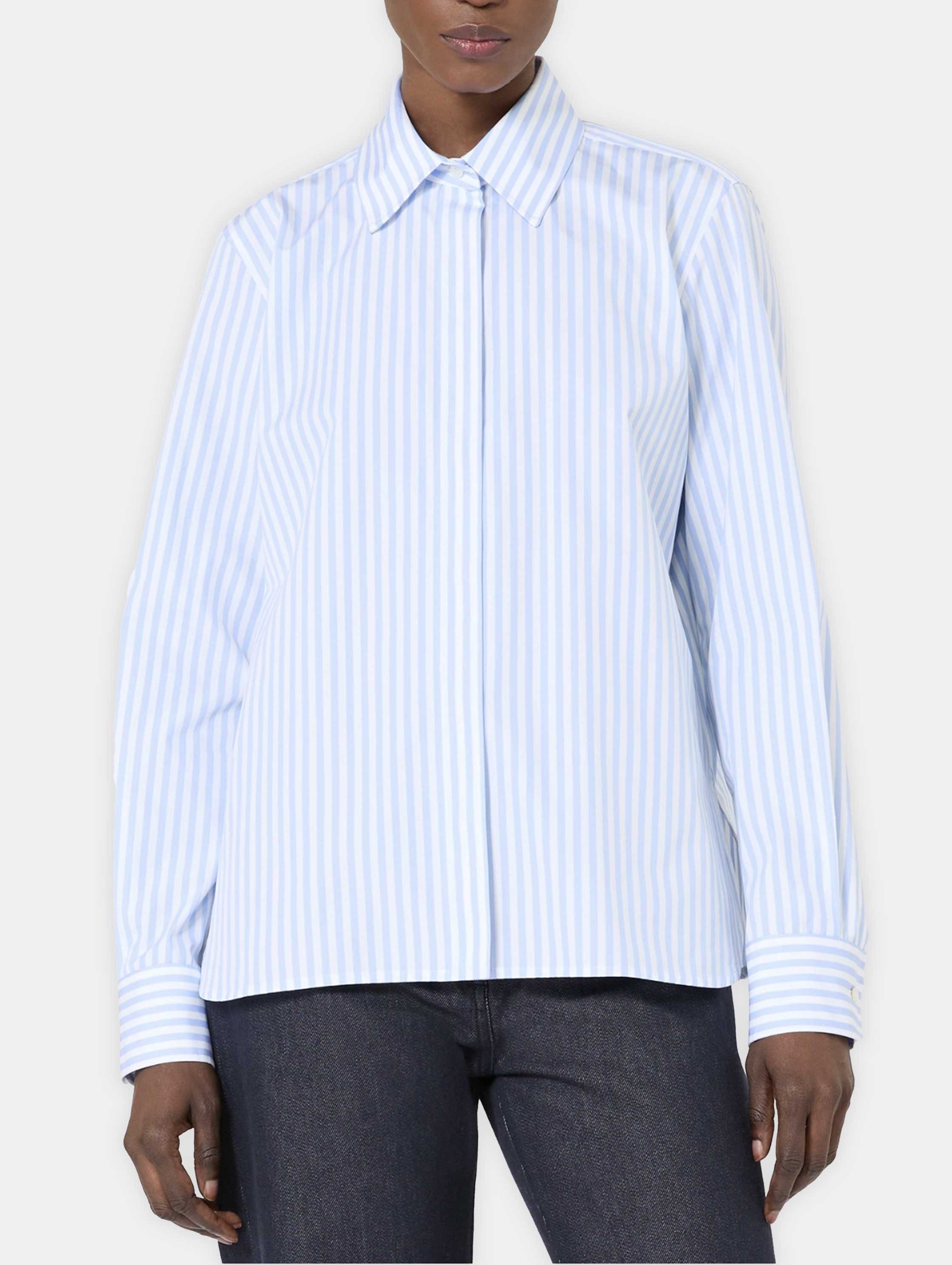 Le rivet “M” en métal au poignet apporte une touche signature discrète, tandis que l’empiècement et le pli au milieu du dos assurent une belle tenue. Son bas arrondi avec fentes sur les côtés permet de la porter aussi bien rentrée que sortie, pour une allure élégante et moderne.
