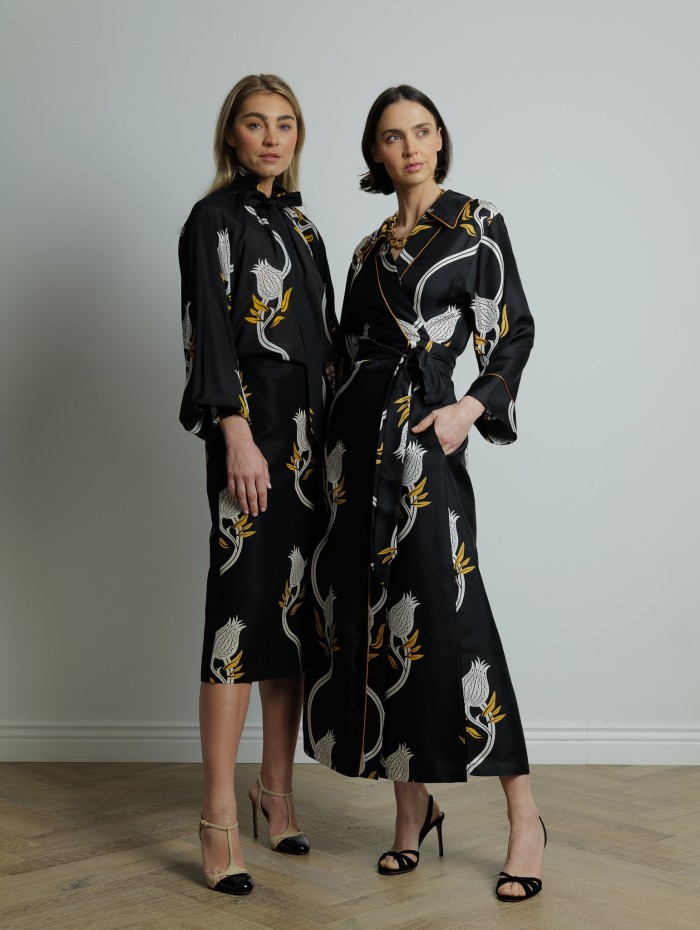 Apportez une touche de romance et de fantaisie à votre garde-robe avec la blouse Cerere de La DoubleJ. Légère et sublime, elle se distingue par son imprimé Melograno éclatant, une véritable œuvre d'art qui illumine instantanément votre look. La silhouette vintage, délicatement inspirée des années passées, séduit par son côté rétro-chic, tandis que la lavallière amovible, fixée par des boucles élégantes, offre une multitude de possibilités de style : nouée pour un look sophistiqué, portée en ceinture pour une touche moderne ou laissée lâche pour une allure décontractée.